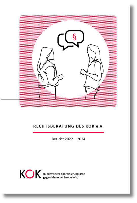 Seit Oktober 2020 bietet der KOK mit der Rechtsberatungsstelle ein niedrigschwelliges Angebot für die eigenen Mitgliedsorganisationen an. Der vorliegende Bericht „Rechtsberatung des KOK e.V. – Bericht 2022 – 2024“ legt den Fokus auf die rechtlichen Herausforderungen von Betroffenen im Asyl- und Aufenthaltsrecht und gibt einen Überblick zu Fragestellung in den Bereichen Alimentierung, Entschädigung, Strafverfahren und Familienrecht.