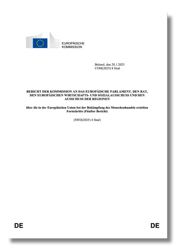 Die Europäische Kommission hat ihren fünften Bericht zur Bekämpfung des Menschenhandels veröffentlicht und darin einen Anstieg der registrierten Betroffenen um 20,5 Prozent verzeichnet. Im Berichtszeitraum wurden 17.248 Betroffene von Menschenhandel registriert. Dies entspricht einem Anstieg um 20,5 Prozent im Vergleich zum vorherigen Zeitraum (2019 –2020). Zwischen 2021 und 2022 stieg die Zahl der dokumentierten Fälle von 7.155 auf 10.093. Da viele Betroffene unentdeckt bleiben liegt die Dunkelziffer vermutlich deutlich höher.