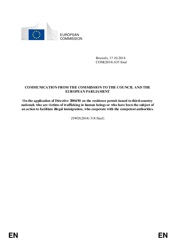 COMMUNICATION FROM THE COMMISSION TO THE COUNCIL AND THE EUROPEAN PARLIAMENT On the application of Directive 2004/81 on the residence permit issued…