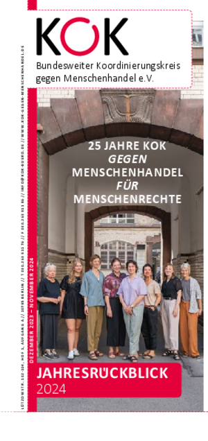 Im Oktober 2024 erschien der erste Bericht der Berichterstattungsstelle Menschenhandel des Deutschen Instituts für Menschenrechte. Der Bericht zeigt Entwicklungen seit 2020 und bewertet die Maßnahmen von Bund und Ländern. Der KOK trug Erkenntnisse aus der zivilgesellschaftlichen Datenerhebung bei. Zudem wurde der KOK-Datenbericht 2024 veröffentlicht, der aufzeigt, dass viele der im Koalitionsvertrag festgelegten Ziele weiterhin unerfüllt bleiben.